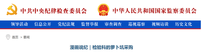 去年11月,中纪委发布《漫画说纪|检验科的萝卜坑采购》,以漫画形式揭露医疗设备采购中的「定制式」招标内幕,直指医疗购销领域腐败问。